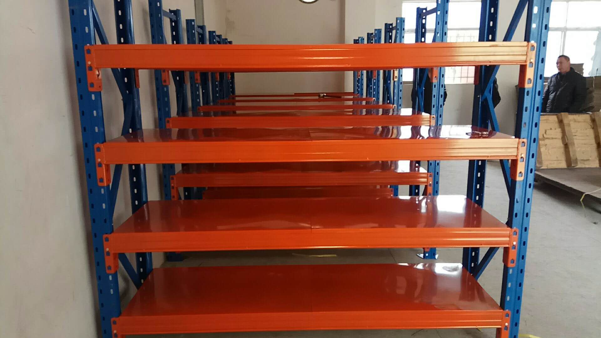 3、貨架材質:重型貨架是倉儲中最常見常用的一種,以立柱片和橫梁形式組合而成,結構簡明有效,重型貨架基本都是以冷軋鋼為主生產制作而成,但是真正達到國標的就很少,最主要大部分客戶對價格很敏感,最簡單的方法就是按最先確認的承重做試壓,來做一個承重試驗,看否合格,例如:合同簽定2000KG/層 在貨架上放實際2噸的貨,擺放幾天觀察貨架是否變形,最后批量生產的時候,就按樣品來生產驗收就OK了