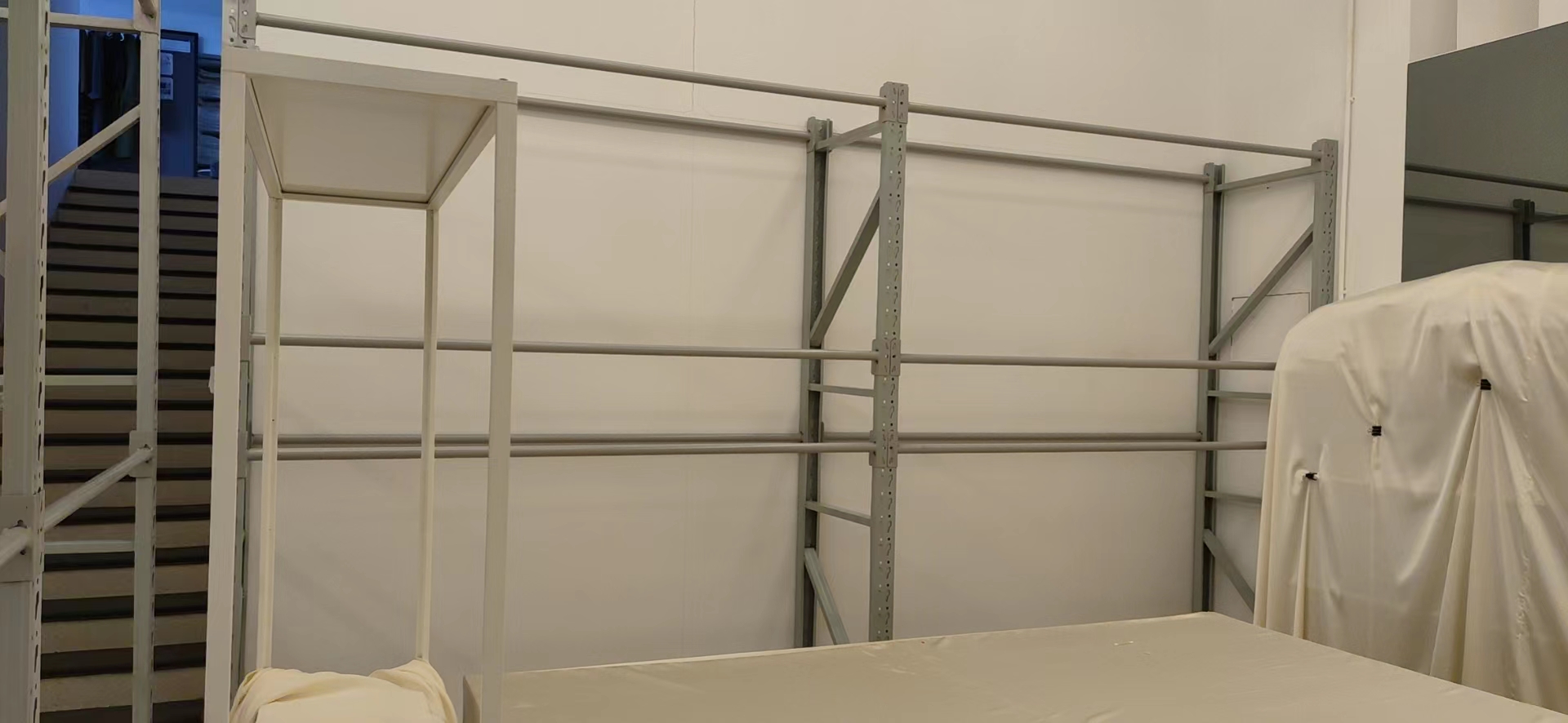 這一款貨架基本是掛打樣件,或是不可疊放的衣服,例如大衣、裙子、外套不好疊放的衣服,掛在貨架上不僅可以節省空間,又可以避免衣服因為疊放的原因起褶,并且這個貨架層高都可以任意調節 這很好的滿足服裝廠的需求.