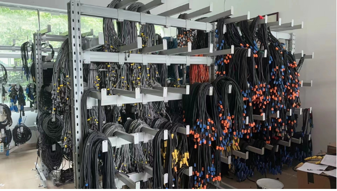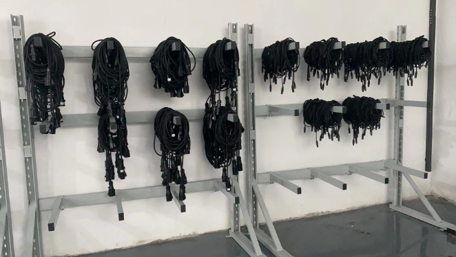 倉儲中為了應(yīng)對這樣的難題,我們對此做了一些創(chuàng)新,設(shè)計了懸臂貨架。兩根突出來的懸臂中間放上一根鋼管,電線電纜可以在存放的時候繞好穿插在鋼管上,這樣無論放置多久都不會散亂,取得時候也極為方便,只需要拿下鋼管即可。有外出任務(wù)的時候,還可以直接帶著鋼管走,這樣到了工作地點,線纜也不會出現(xiàn)雜亂的問題。